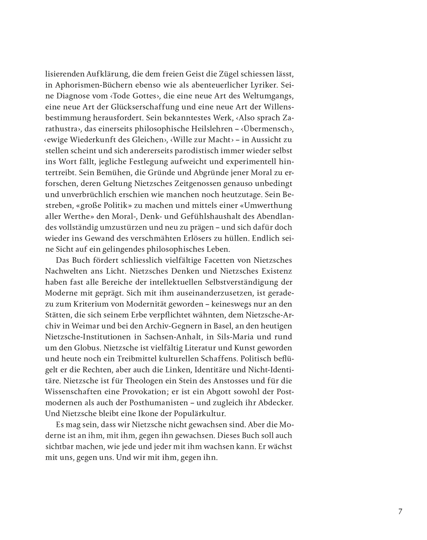 Sein Schnauz ist sein Markenzeichen, seine Werke bieten geistreiche Zitate für jede Gelegenheit, seine Wortschöpfungen sind in die Alltagssprache übergegangen. Doch wer war Friedrich Nietzsche? Was können uns seine Schriften und Ideen heute noch sagen? Das reich bebilderte Buch gibt Antworten auf diese und weitere Fragen. In kompakten Essays wird Nietzsches Gedankenwelt lebendig, im Ausstellungsteil tauchen Sie ein in das wechselvolle Leben und den beispiellosen Nachruhm des berühmten Philosophen. Hochwertige Abbildungen von privaten Briefen, kostbaren Raritäten und überraschenden Einzelstücken laden ein zur unterhaltsamen Entdeckungsreise.