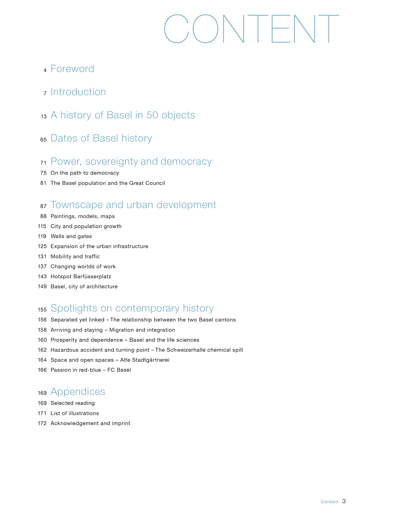 Some 200,000 people from 200 nations live in Basel in the early 2020s. The city is the centre of a large tri-national region. Yet how did Basel become what it is today? This publication offers a concise overview of the events and developments that have shaped the city and the region. Both noteworthy and everyday objects guide us through its history – beginning with the earliest human traces up to objects of the present time. City views, maps, models and numerous historical photographs visualise the rapid transformation that started in the 1850s. Contemporary history is examined on the basis of six themes: the relations between the two Basel cantons, immigration and migration, the role of the pharma industry, or handling space and nature. The richly illustrated book offers a wide readership an immediate and clear access to Basel history.
