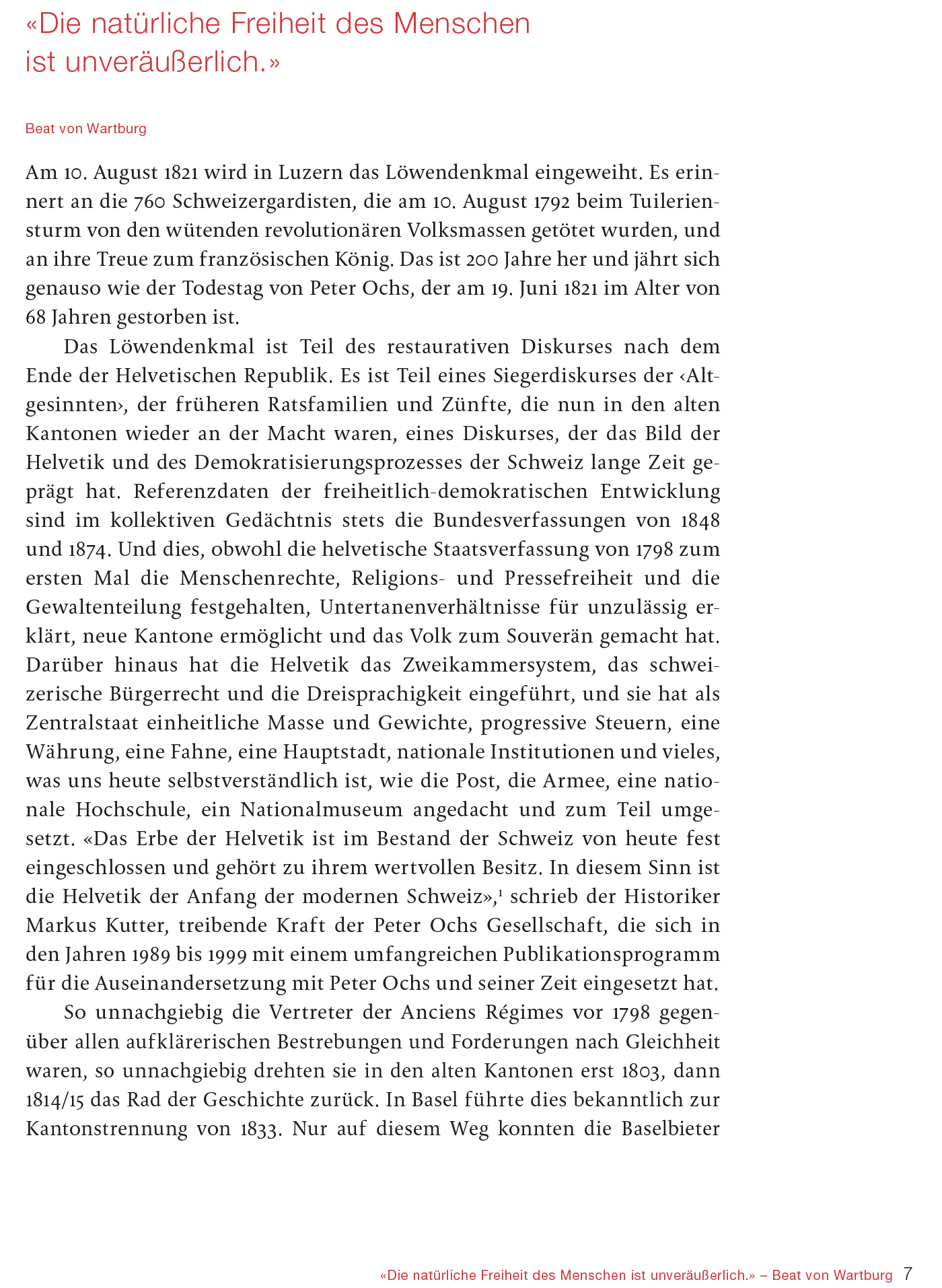 200. Todestag von Peter Ochs: 19. Juni 2021 Bedeutende Persönlichkeit für die Entwicklung der modernen Schweiz Die direkte Demokratie gehört zum Kern des Schweizer Selbstverständnisses. Das war nicht immer so: Gegen Ende des 18. Jahrhunderts herrschte in den Stadtkantonen der Alten Eidgenossenschaft meist eine kleine Elite und grosse Teile der Bevölkerung besassen kaum Mitbestimmungsrechte. Der Basler Politiker und Diplomat Peter Ochs begeisterte sich 1789 offen für die Französische Revolution und setzte sich hartnäckig für die Menschenrechte und die politische Gleichheit ein. 1798 gehörte er als treibende Kraft zu den Gründern der Helvetischen Republik. Obwohl dieses politische Projekt scheiterte und Ochs zeitweise als Landesverräter galt, haben sich viele seiner freiheitlichen Ideale in der Folgezeit verwirklicht. Die Publikation bietet einen kenntnisreichen Einblick in die Biografie von Peter Ochs und die wechselvolle Beurteilung seines Wirkens. Hochwertige Abbildungen bislang unveröffentlichter Dokumente bereichern die Reise durch bewegte Zeiten.