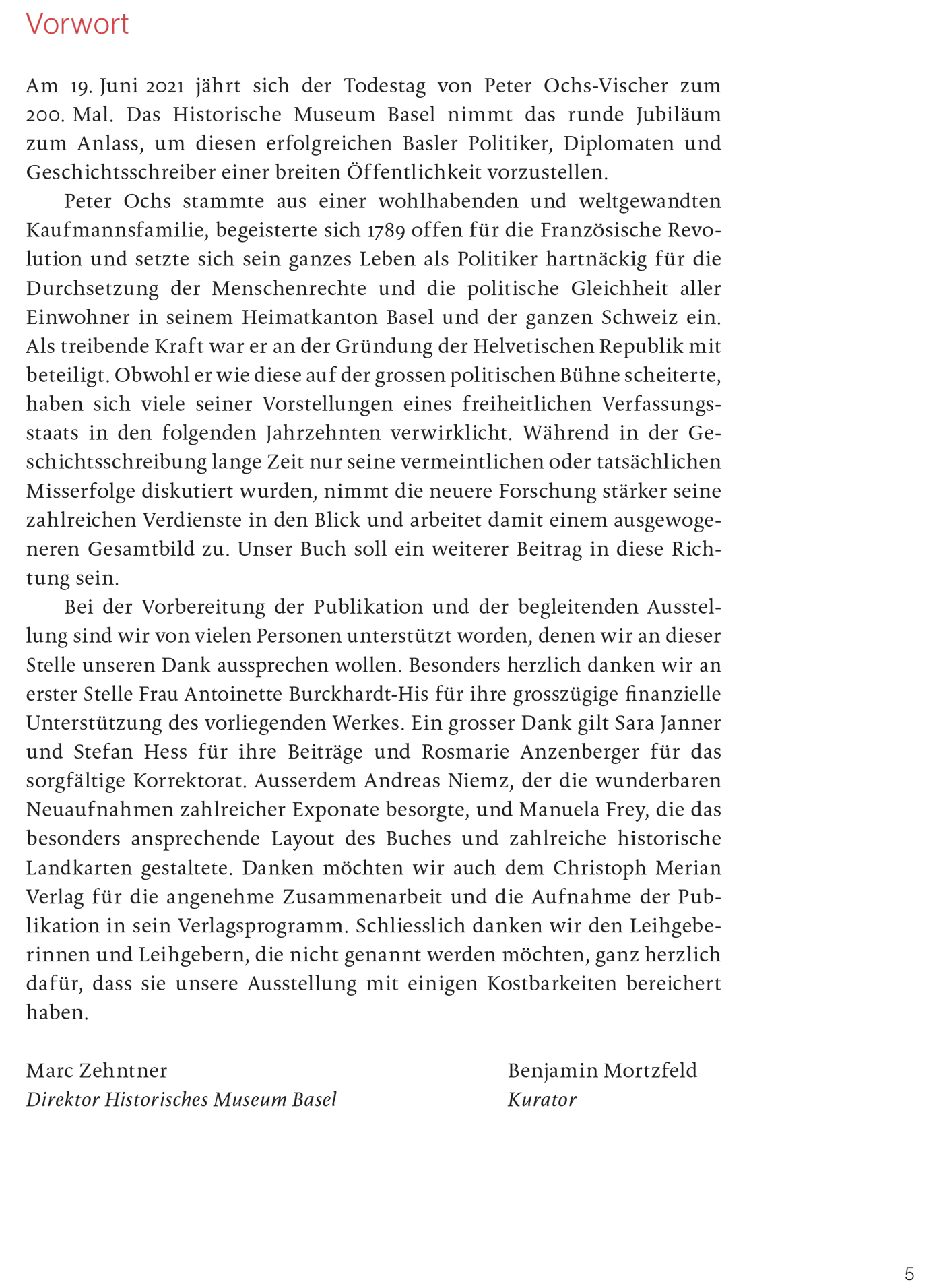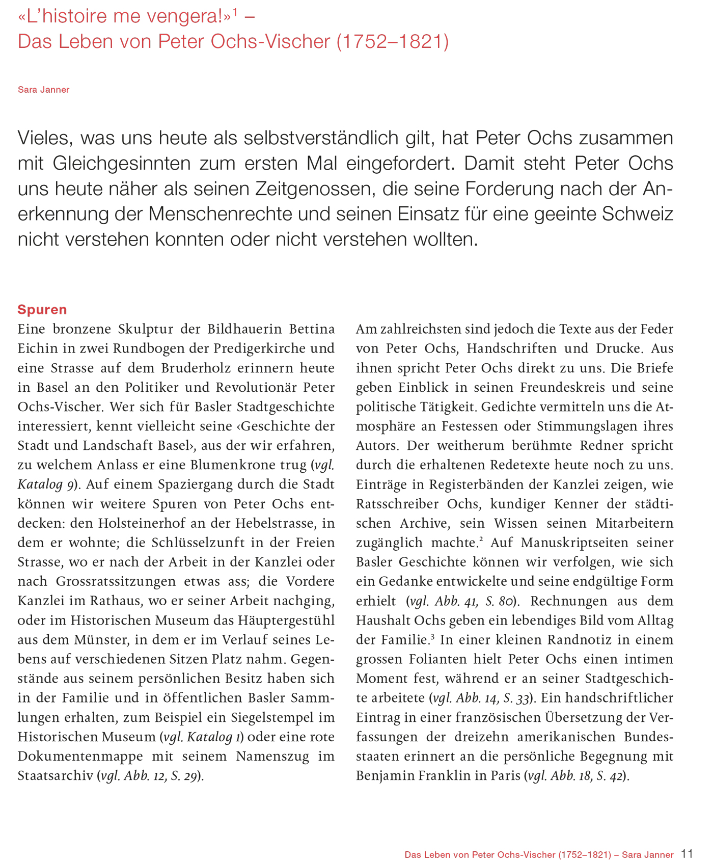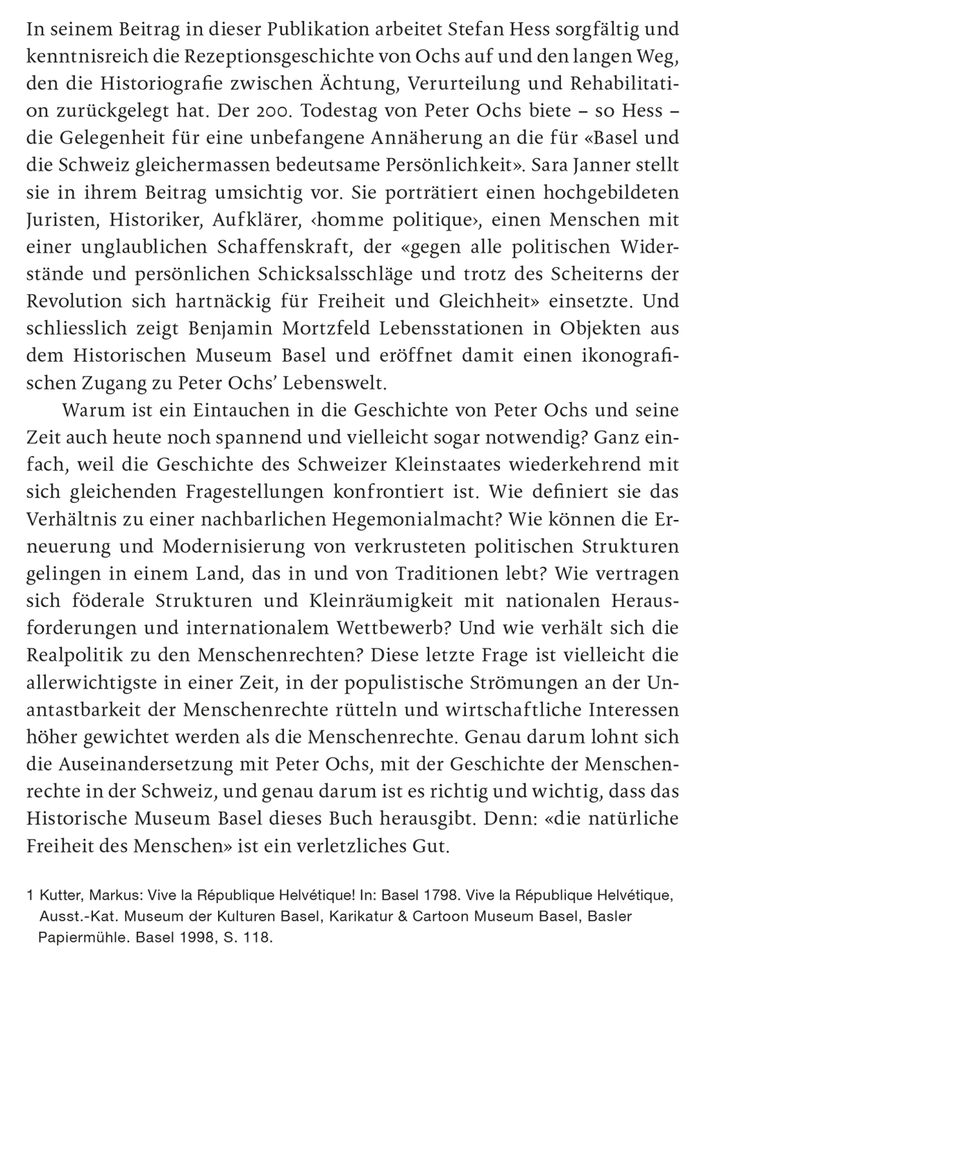 200. Todestag von Peter Ochs: 19. Juni 2021 Bedeutende Persönlichkeit für die Entwicklung der modernen Schweiz Die direkte Demokratie gehört zum Kern des Schweizer Selbstverständnisses. Das war nicht immer so: Gegen Ende des 18. Jahrhunderts herrschte in den Stadtkantonen der Alten Eidgenossenschaft meist eine kleine Elite und grosse Teile der Bevölkerung besassen kaum Mitbestimmungsrechte. Der Basler Politiker und Diplomat Peter Ochs begeisterte sich 1789 offen für die Französische Revolution und setzte sich hartnäckig für die Menschenrechte und die politische Gleichheit ein. 1798 gehörte er als treibende Kraft zu den Gründern der Helvetischen Republik. Obwohl dieses politische Projekt scheiterte und Ochs zeitweise als Landesverräter galt, haben sich viele seiner freiheitlichen Ideale in der Folgezeit verwirklicht. Die Publikation bietet einen kenntnisreichen Einblick in die Biografie von Peter Ochs und die wechselvolle Beurteilung seines Wirkens. Hochwertige Abbildungen bislang unveröffentlichter Dokumente bereichern die Reise durch bewegte Zeiten.