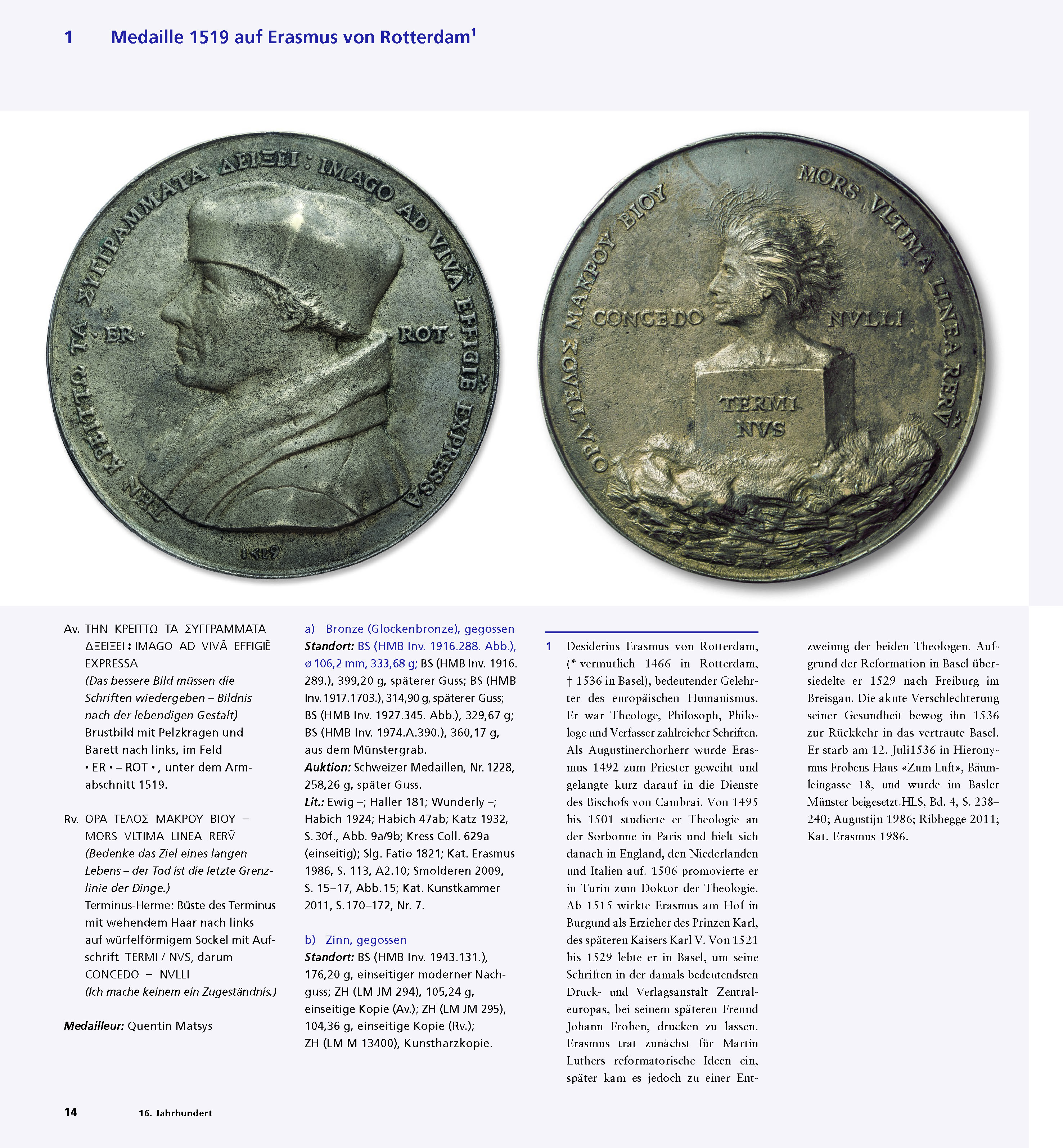 Medaillen sind herausragende Dokumente der Kunst- und Kulturgeschichte. Die Gepflogenheit, Ereignisse und Persönlichkeiten in Metall verewigen zu lassen, war in der Handels- und Gelehrtenstadt Basel besonders früh üblich, angefangen mit Erasmus von Rotterdam (1519). Ausgehend vom Bestand des Historischen Museums Basel und den wichtigsten Sammlungen des In- und Auslands, legt Christian Winterstein erstmals einen umfassenden Katalog aller bekannten Medaillen vor, die bis einschliesslich 1901 in Basel hergestellt wurden und auf Basler Persönlichkeiten oder Ereignisse verweisen. Der Katalog ist eine wertvolle Dokumentation für Numismatiker und Sammler und gleichzeitig ein spannendes Lesebuch über Basler Geschichte und Geschichten.