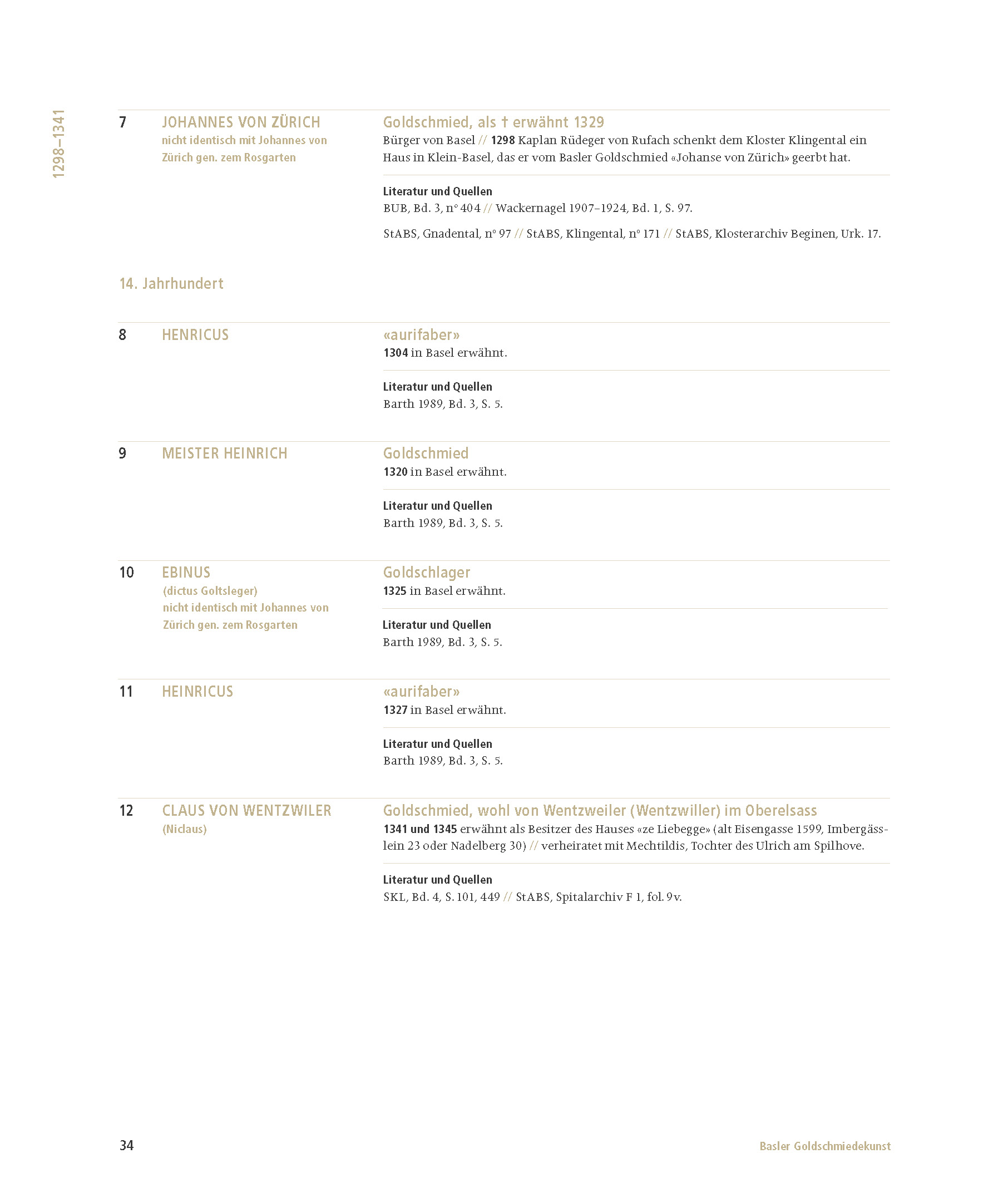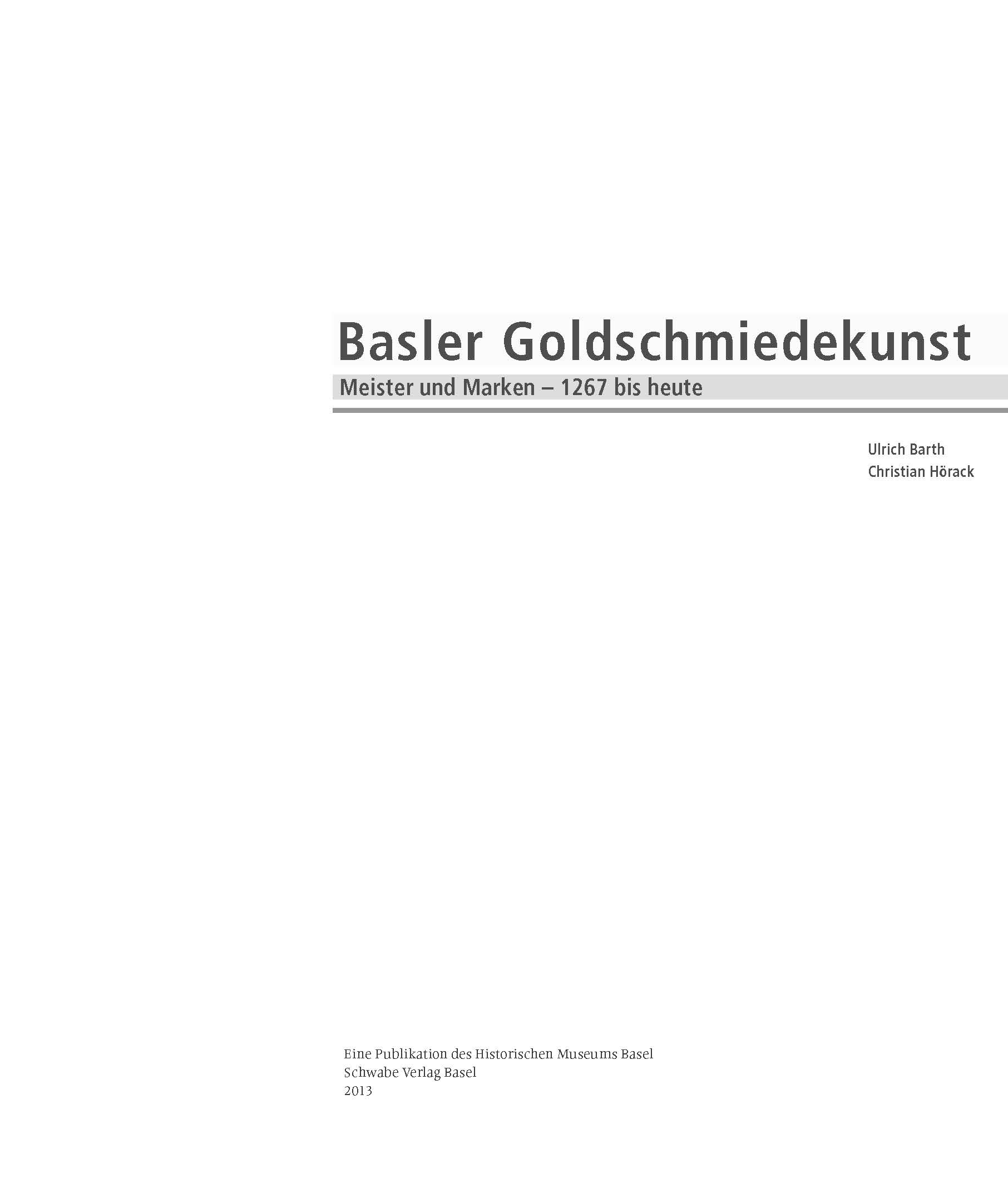 Basel war ein herausragendes Goldschmiedezentrum der Schweiz. Seit nahezu 750 Jahren lassen sich rund 1000 Goldschmiede namentlich identifizieren. Erstmals werden in diesem Nachschlagewerk alle in Basel nachweisbaren Goldschmiede, ihre Meistermarken sowie die Basler Beschauzeichen erfasst. Alle Basler Silberobjekte des Historischen Museums Basel und weiterer öffentlicher Sammlungen sowie eine grosse Auswahl von Objekten aus Privatbesitz sind aufgeführt.