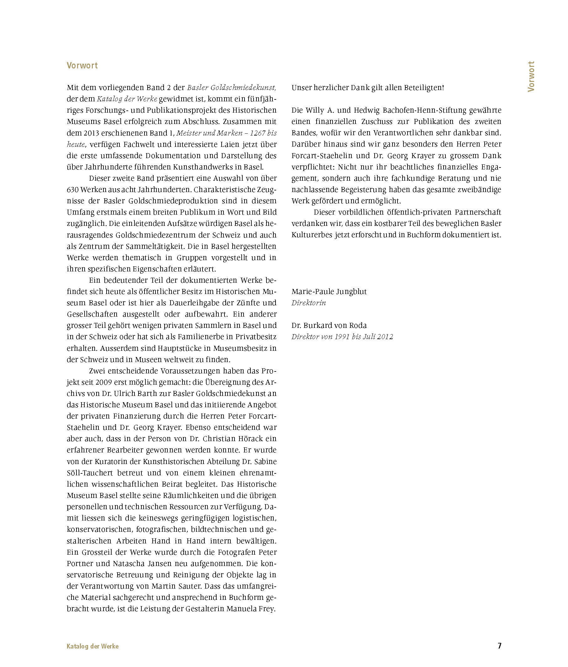 Basel war über Jahrhunderte eines der bedeutendsten Goldschmiedezentren Europas. Die reich bebilderte Publikation gibt erstmals einen Überblick über die umfangreiche und qualitätvolle Produktion von Werken aus Gold und Silber in der Rheinstadt. Basler Goldschmiedekunst – Katalog der Werke ist ein unverzichtbares Nachschlagewerk für Kunsthandel, Sammler und Kunstfreunde sowie für die kulturgeschichtliche Forschung. Basler Goldschmiedekunst – Katalog der Werke präsentiert über 630 ausgewählte Objekte aus der Sammlung des Historischen Museums Basel sowie aus privatem und öffentlichem Besitz. Fünf einführende Aufsätze beleuchten die traditionsreiche Sammlertätigkeit in Basel und führen in die Geschichte des Handwerks ein. Das Buch ergänzt den 2013 erschienenen ersten Band Basler Goldschmiedekunst. Meister und Marken – 1267 bis heute. Aus dem immensen, dank der langjährigen Archivforschungen Ulrich Barths zusammengetragenen Material, hat Christian Hörack die beiden Bände zur Basler Goldschmiedekunst erarbeitet. Das Historische Museum Basel gibt hiermit eine weitere Publikation zu seinem reichen Bestand heraus. Mit den eigens für den Katalogband angefertigten Fotoaufnahmen der silbernen und goldenen Objekte sowie der hochwertigen grafischen Gestaltung liegt ein zugleich prächtiger und aussagekräftiger Bildband zur Schweizer Kulturgeschichte vor.