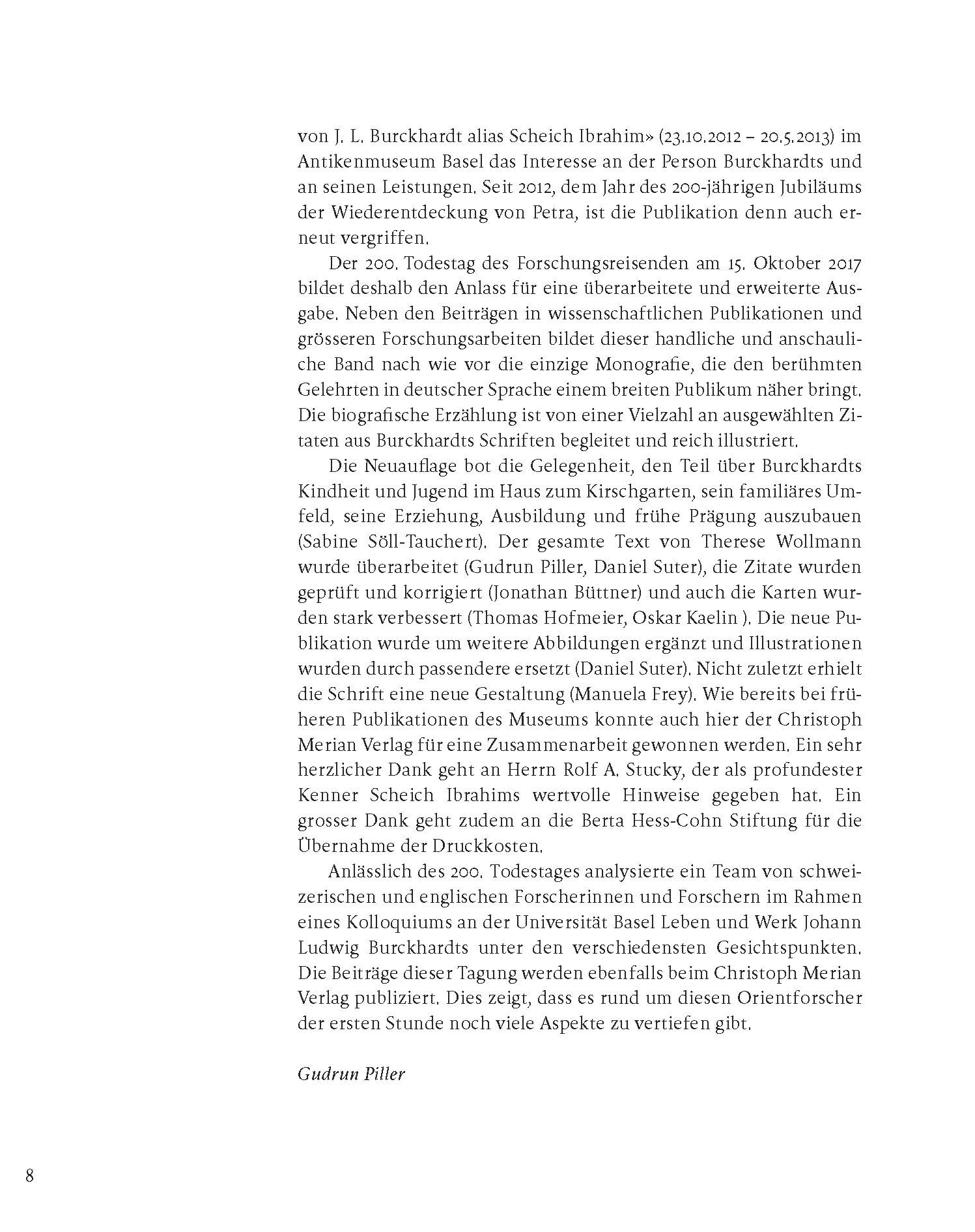 Die Biografie erzählt das Leben des Baslers Johann Ludwig Burckhardt, der als Sohn eines Handelsherrn seine Kindheit im Haus zum Kirschgarten verbracht hatte. Im Auftrag einer britischen Forschungsgesellschaft bereiste er unter dem Namen Scheich Ibrahim Ibn Abdalla zwischen 1809–1817 den Nahen Osten. Seine Fähigkeit, sich in fremde Kulturen einzuleben und dennoch objektiv über sie zu schreiben, macht ihn zu einem einzigartigen Zeitzeugen arabischer Lebenswelten. Für die Archäologie spielt Burckhardt als (Wieder-)Entdecker der Felsenstadt Petra und des grossen ägyptischen Tempels von Abu Simbel eine wichtige Rolle. Als einer der ersten Europäer beschrieb er zudem die Wahabiten, was einigen seiner Texte eine beklemmende Aktualität verleiht.