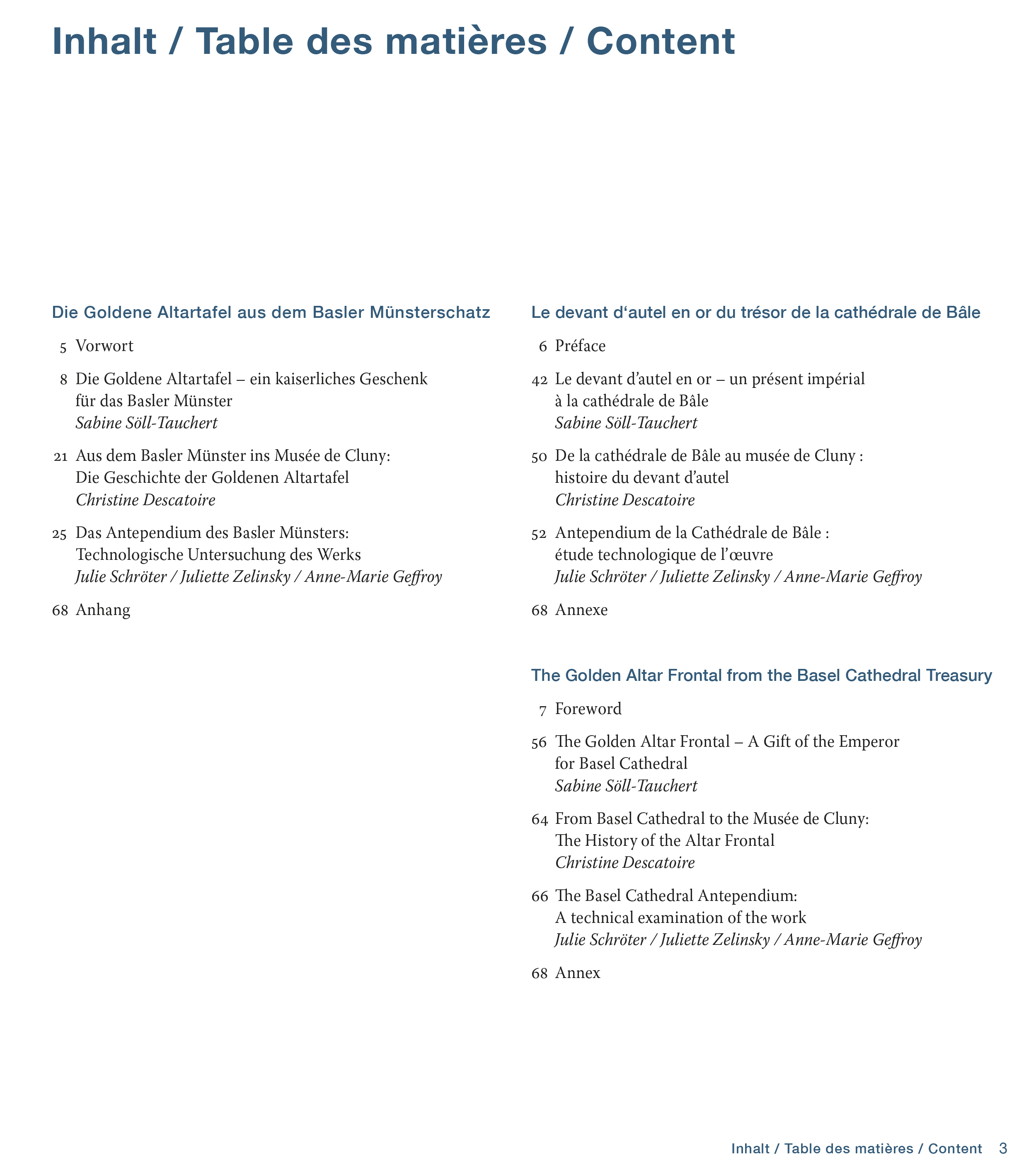Dreisprachige Publikation über die die Goldene Altartafel aus dem Basler Münsterschatz.