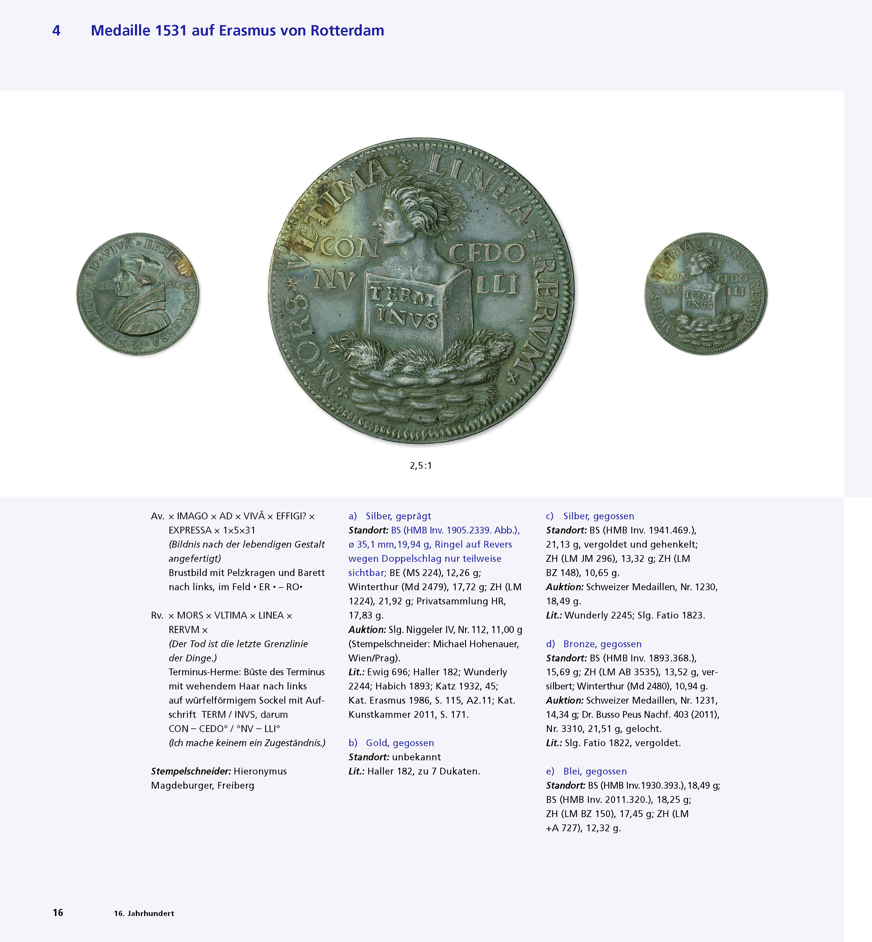 Medaillen sind herausragende Dokumente der Kunst- und Kulturgeschichte. Die Gepflogenheit, Ereignisse und Persönlichkeiten in Metall verewigen zu lassen, war in der Handels- und Gelehrtenstadt Basel besonders früh üblich, angefangen mit Erasmus von Rotterdam (1519). Ausgehend vom Bestand des Historischen Museums Basel und den wichtigsten Sammlungen des In- und Auslands, legt Christian Winterstein erstmals einen umfassenden Katalog aller bekannten Medaillen vor, die bis einschliesslich 1901 in Basel hergestellt wurden und auf Basler Persönlichkeiten oder Ereignisse verweisen. Der Katalog ist eine wertvolle Dokumentation für Numismatiker und Sammler und gleichzeitig ein spannendes Lesebuch über Basler Geschichte und Geschichten.
