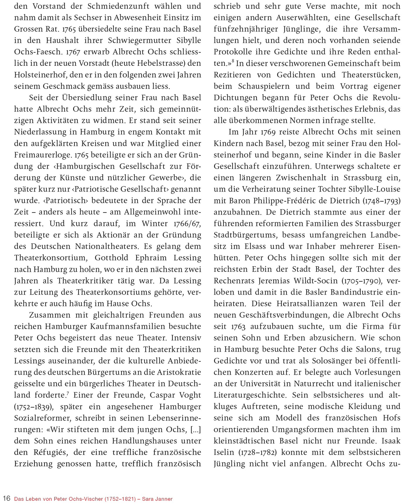 200. Todestag von Peter Ochs: 19. Juni 2021 Bedeutende Persönlichkeit für die Entwicklung der modernen Schweiz Die direkte Demokratie gehört zum Kern des Schweizer Selbstverständnisses. Das war nicht immer so: Gegen Ende des 18. Jahrhunderts herrschte in den Stadtkantonen der Alten Eidgenossenschaft meist eine kleine Elite und grosse Teile der Bevölkerung besassen kaum Mitbestimmungsrechte. Der Basler Politiker und Diplomat Peter Ochs begeisterte sich 1789 offen für die Französische Revolution und setzte sich hartnäckig für die Menschenrechte und die politische Gleichheit ein. 1798 gehörte er als treibende Kraft zu den Gründern der Helvetischen Republik. Obwohl dieses politische Projekt scheiterte und Ochs zeitweise als Landesverräter galt, haben sich viele seiner freiheitlichen Ideale in der Folgezeit verwirklicht. Die Publikation bietet einen kenntnisreichen Einblick in die Biografie von Peter Ochs und die wechselvolle Beurteilung seines Wirkens. Hochwertige Abbildungen bislang unveröffentlichter Dokumente bereichern die Reise durch bewegte Zeiten.