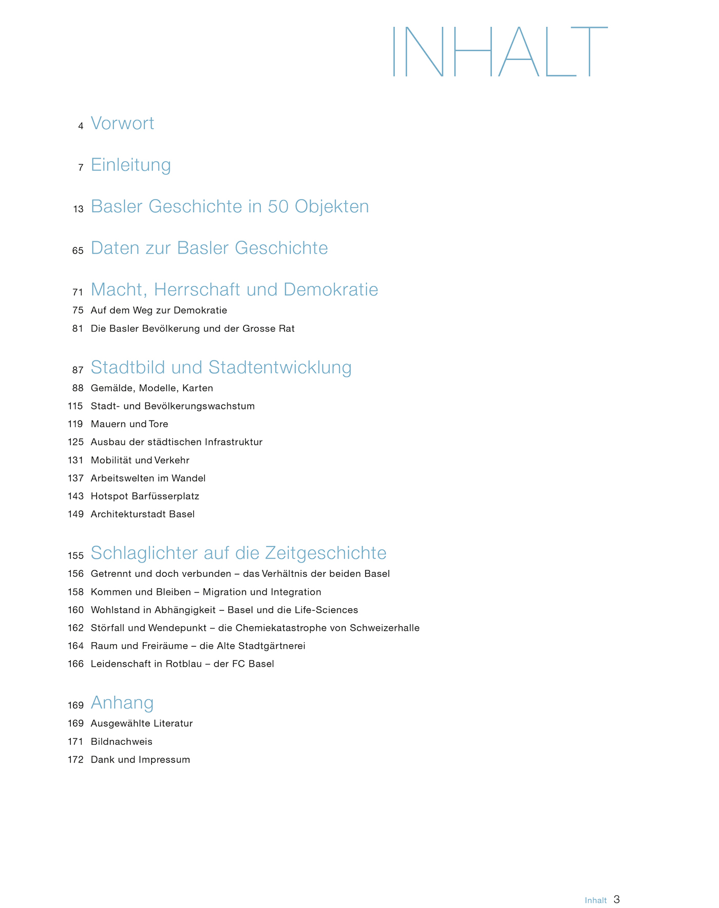 Die jüngste Zeitgeschichte wird anhand von sechs Schwerpunktthemen beleuchtet, darunter die Beziehung zwischen Stadt- und Landkanton, Zuwanderung und Migration, die Bedeutung der Pharmaindustrie oder der Umgang mit Raum und Natur.
