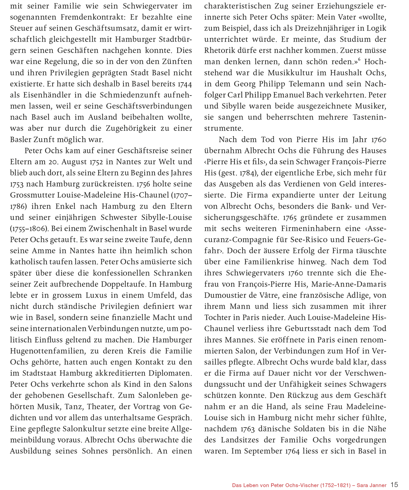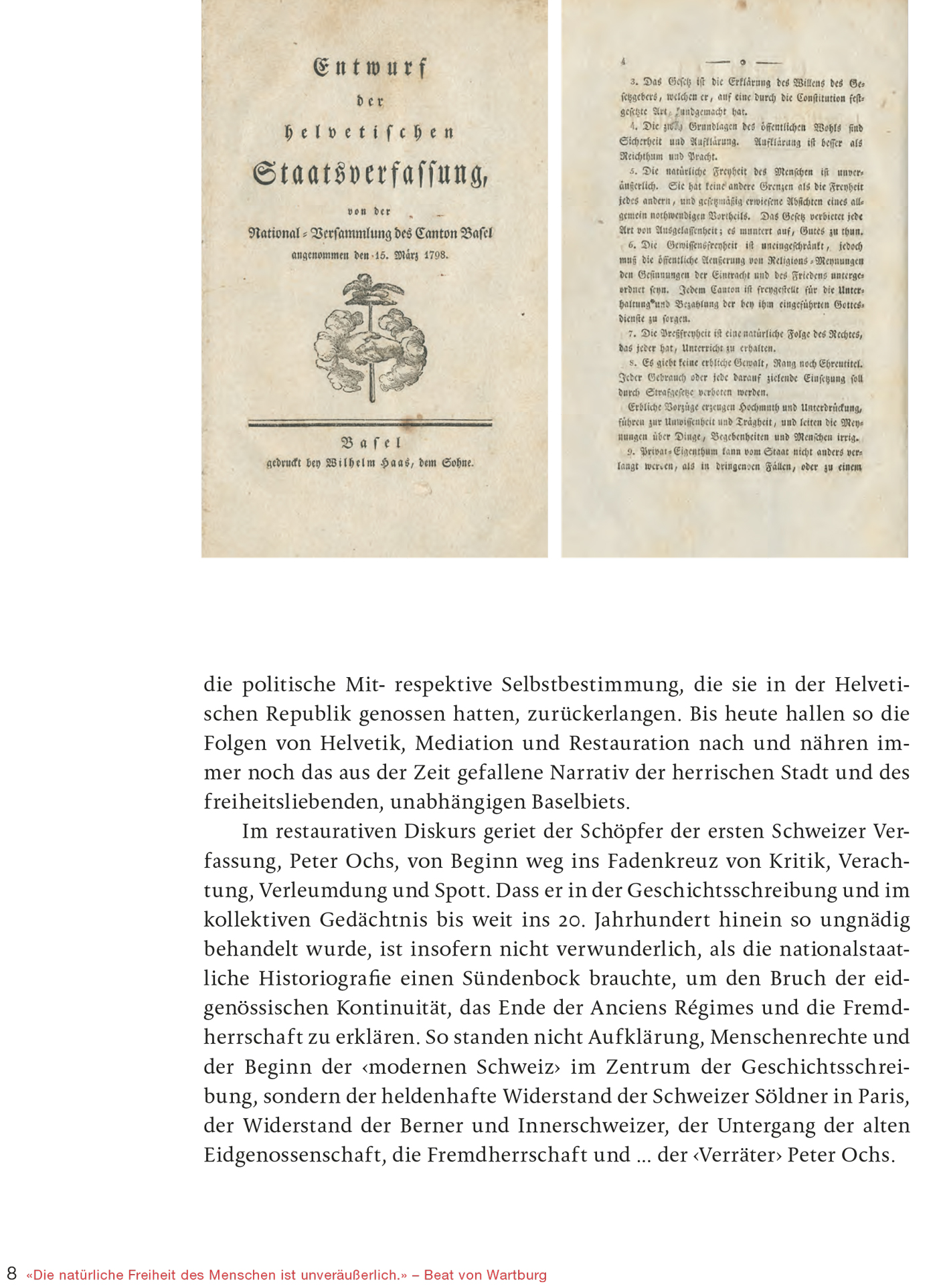 200. Todestag von Peter Ochs: 19. Juni 2021 Bedeutende Persönlichkeit für die Entwicklung der modernen Schweiz Die direkte Demokratie gehört zum Kern des Schweizer Selbstverständnisses. Das war nicht immer so: Gegen Ende des 18. Jahrhunderts herrschte in den Stadtkantonen der Alten Eidgenossenschaft meist eine kleine Elite und grosse Teile der Bevölkerung besassen kaum Mitbestimmungsrechte. Der Basler Politiker und Diplomat Peter Ochs begeisterte sich 1789 offen für die Französische Revolution und setzte sich hartnäckig für die Menschenrechte und die politische Gleichheit ein. 1798 gehörte er als treibende Kraft zu den Gründern der Helvetischen Republik. Obwohl dieses politische Projekt scheiterte und Ochs zeitweise als Landesverräter galt, haben sich viele seiner freiheitlichen Ideale in der Folgezeit verwirklicht. Die Publikation bietet einen kenntnisreichen Einblick in die Biografie von Peter Ochs und die wechselvolle Beurteilung seines Wirkens. Hochwertige Abbildungen bislang unveröffentlichter Dokumente bereichern die Reise durch bewegte Zeiten.